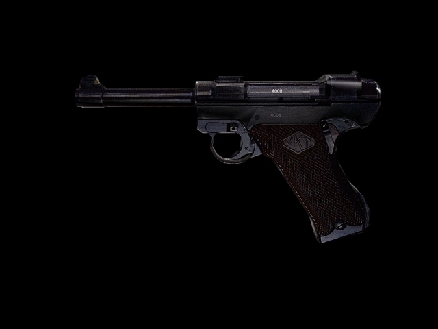 Caliber: 9mm Parabellum Length: 24 cm(9½") Weight: 1,2 kilos(2,5 lbs) Magazine: 8 rounds Rate of fire: semi-auto