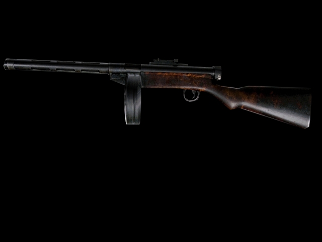 Caliber: 9mm Parabellum Length: 87 cm(2'11") Weight: 4,7 kilos(9,96 lbs) Magazine: 70 rounds Rate of fire: 900 rounds per minute